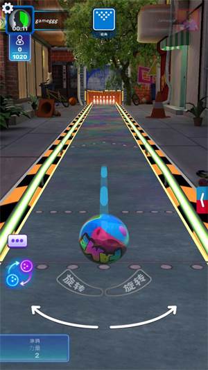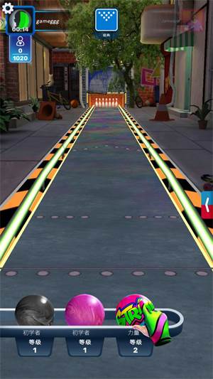 经典保龄模式:标准10球道,需全中(Strike)或补中(Spare)积累高分,注意保留技能应对后期复杂球瓶布局。